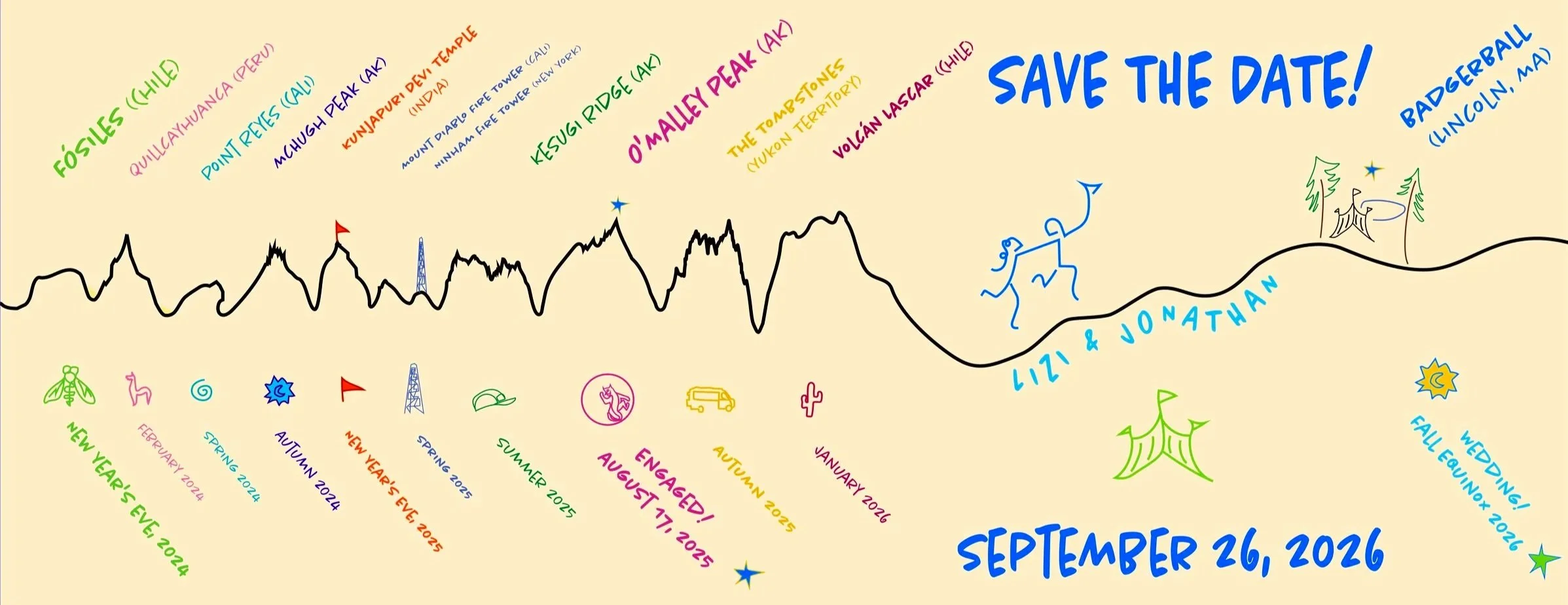 On top of the pointiest mountain you can see from The Roost, on the day before they leave Alaska, Jonathan asks Lizi to marry him with a mother-of-pearl + sparkly leopard ring acquired the day J+L were arrested in India (seriously, don’t bring an InReach). An easy yes. After a nap on the summit and a dip in an alpine lake, they celebrate in the only way possible: over a bowl of ramen… →
